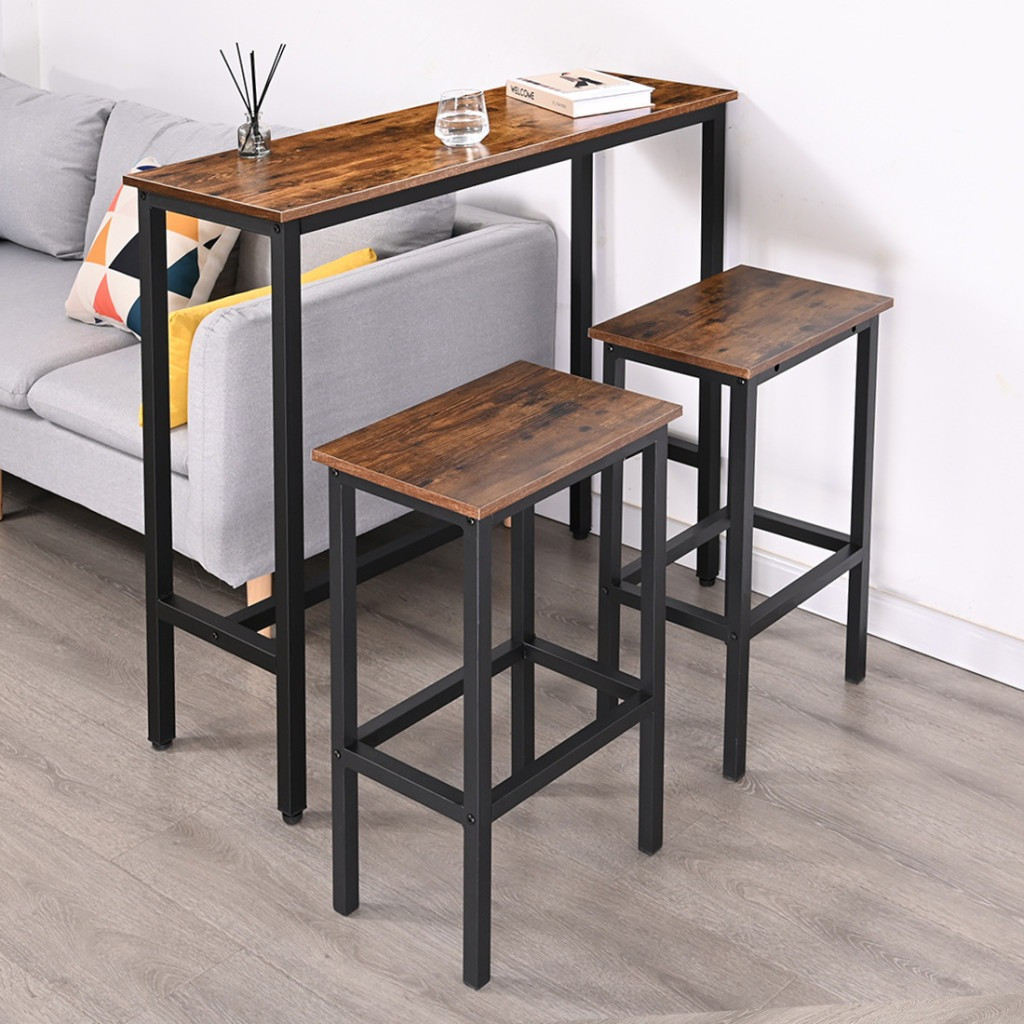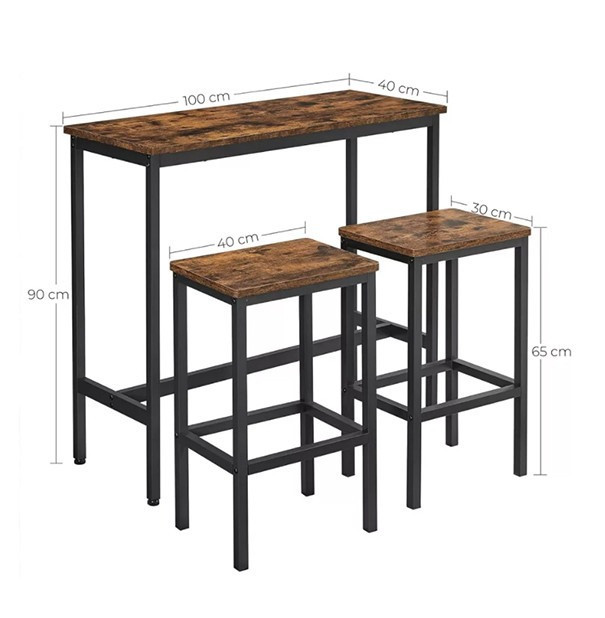 Barová sada 3 díly 1 stůl se 2 barovými židlemi hnědá BD02-BROWN