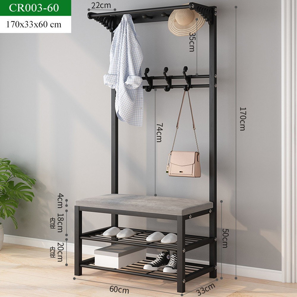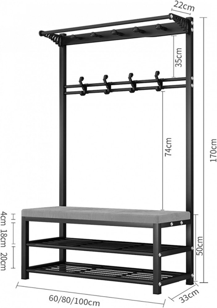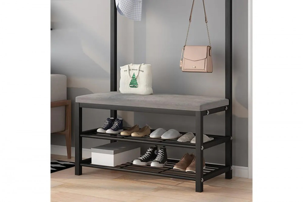 Nechybí ani dvě poličky na odkládání bot a v horní části si kabáty a tašky můžete nechat na ramínkách a dvou řadách ramínek. Jeho 4 cm silná, měkká, polstrovaná část slouží jako pohodlné sezení při obouvání a zouvání.