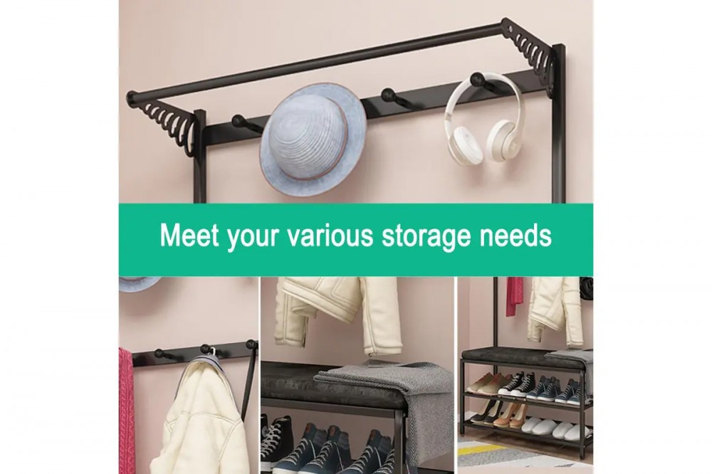 Nechybí ani dvě poličky na odkládání bot a v horní části si kabáty a tašky můžete nechat na ramínkách a dvou řadách ramínek. Jeho 4 cm silná, měkká, polstrovaná část slouží jako pohodlné sezení při obouvání a zouvání.