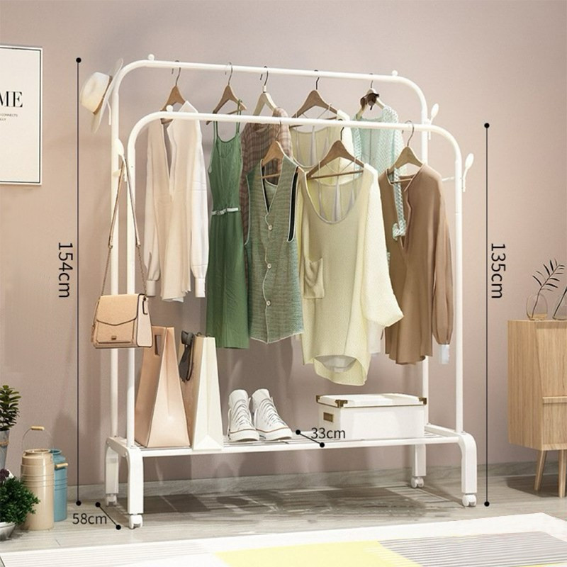 Věšák na oblečení s botníkem a kolečky 154 x 58 x 130 cm bílý CR008-125