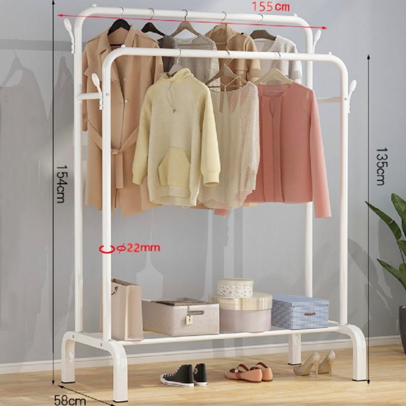 Má dvě police pro boty, horní část je vybavena ramínky a po stranách držáky na oblečení. Jeho lehká konstrukce a kolečka na spodní straně umožňují snadné přemístění.