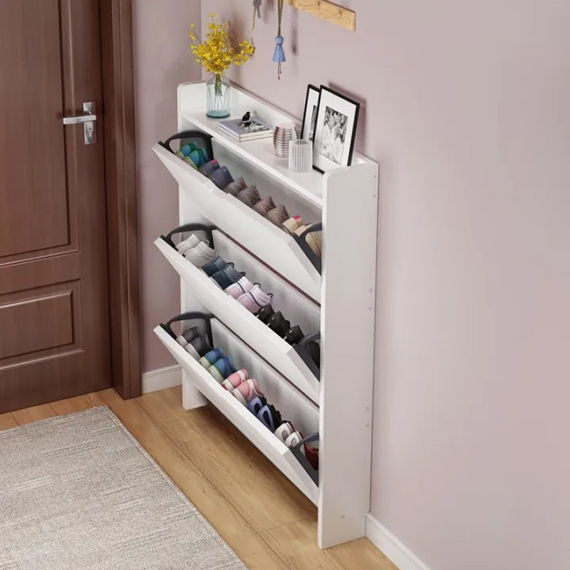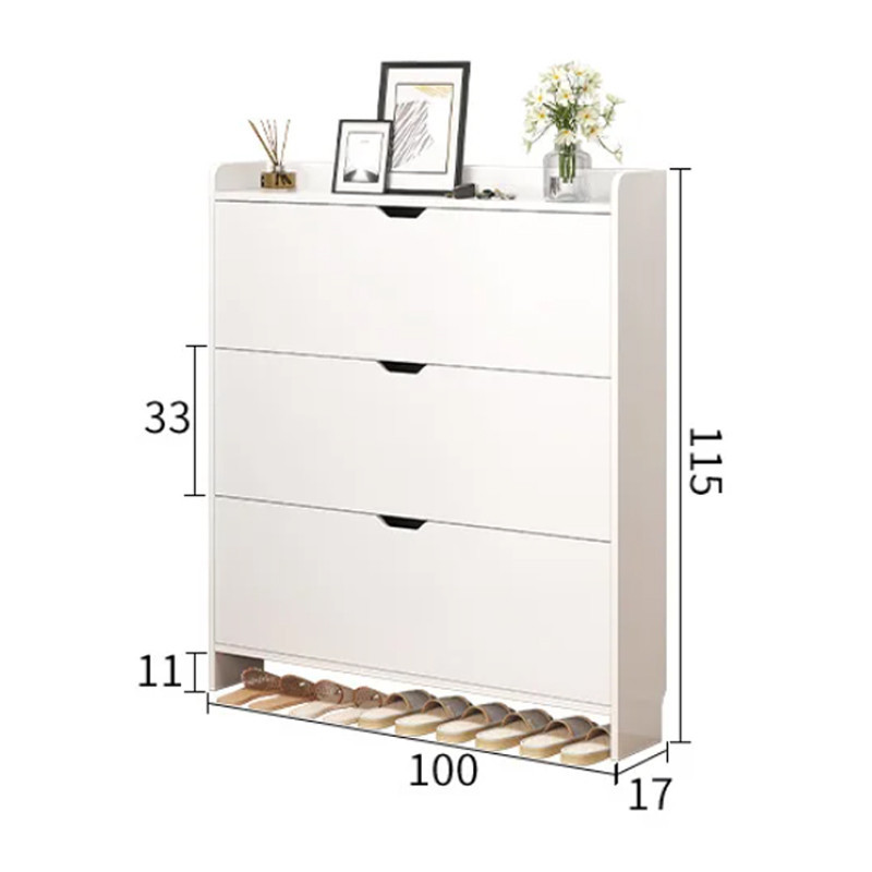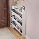 Jedinečný kus nábytku do předsíně s pohodlným úložným prostorem pro boty a doplňky. Tato skříňka na boty představuje nadčasový styl. Na boty jsou tři police. Navrženo speciálně pro skladování suché obuvi. má „houpací“ dveře, které se otevírají shora dolů.