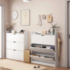 Jedinečný kus nábytku do předsíně s pohodlným úložným prostorem pro boty a doplňky. Tato skříňka na boty představuje nadčasový styl. Na boty jsou dvě police. Navrženo speciálně pro skladování suché obuvi. má „houpací“ dveře, které se otevírají shora dolů.