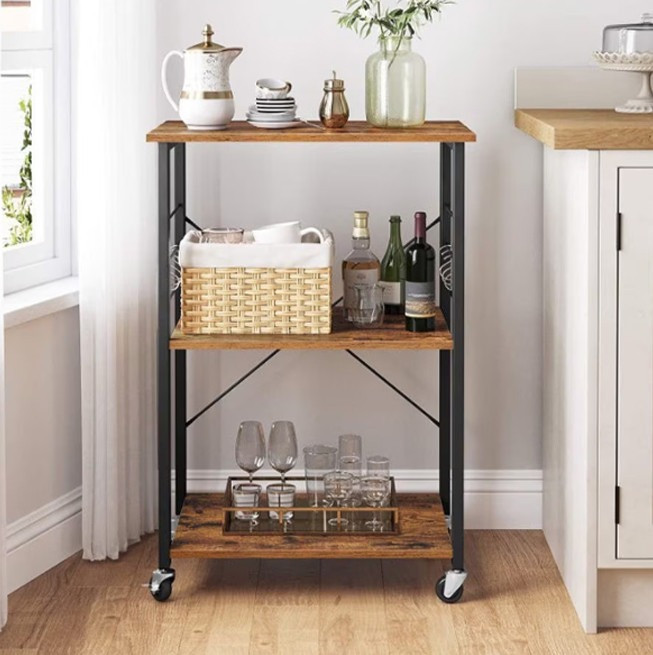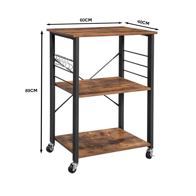 Kuchyňský policový vozík s kolečky rustikální 60 x 40 x 89 cm BC STL-05